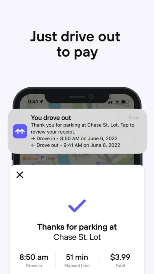 When you've finished parking, just drive out to pay automatically. We'll send you a receipt after every visit, and you can access your complete parking history at any time.