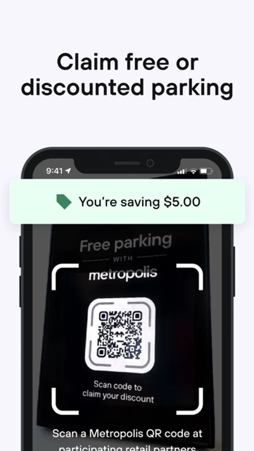 Look for a Metropolis sign at participating retailers near your parking location. From your visit page, simply scan the QR code to apply the discount. You'll see your parking price adjust right away in the app.