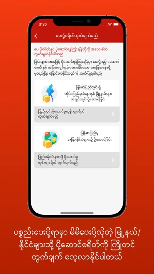This application will be support for local township Post code, Post office location, Post box location information and tracking service from Myanmar Post.