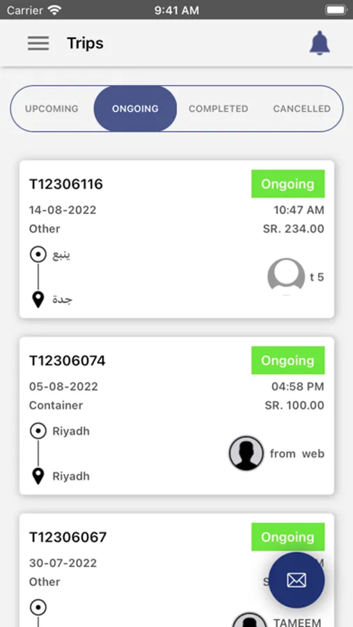 - اختيار نوع الشاحنة والمواد المراد شحنها.