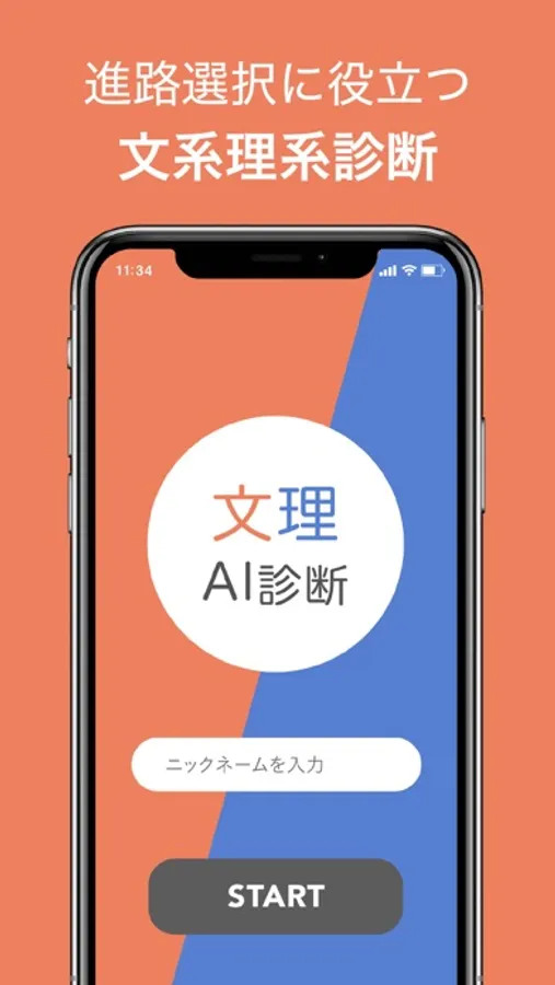 ※このアプリは弊社オリジナルのAIによってあなたの考え方が文理どちらの先輩に近いかを測るものであり、あなたの適性を完全に決定するものではありません。結果はあくまで進路選択の一つの参考にするに留めていただけますと幸いです。