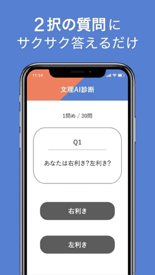 ■約29問の質問を通して、自分が文系脳か、理系脳かをオリジナルAIが判別する診断アプリです!