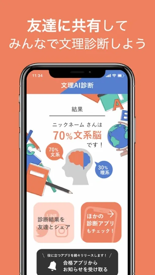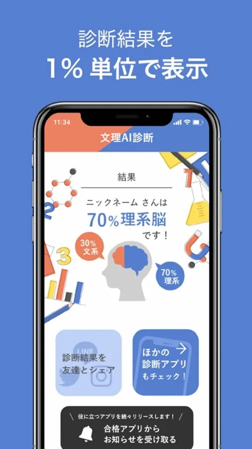 ・診断結果を、友達にSNSを用いて共有することが可能です。
