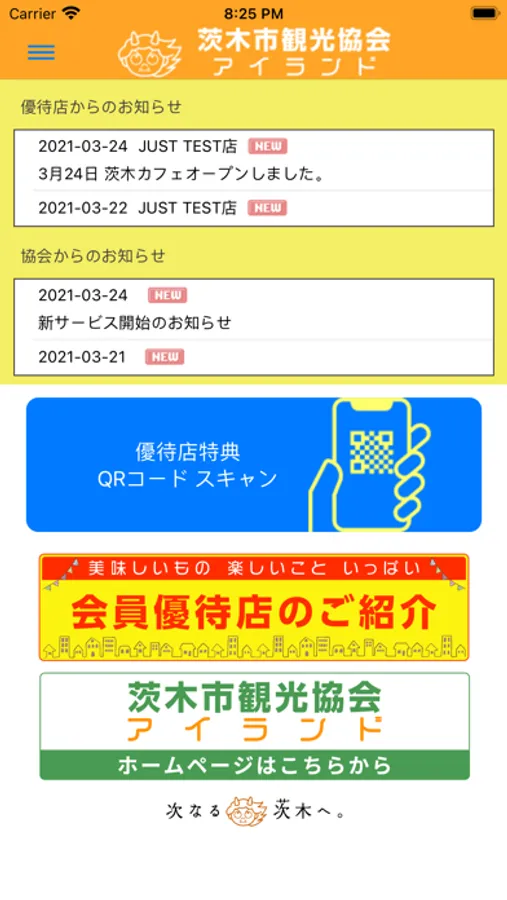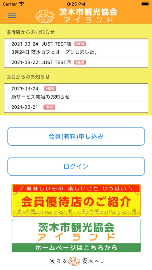 このアプリから観光協会会員への入会申し込みができます。観光協会の会員になることで優待店特典を受けることができます。その他さまざまな特典があります。詳しくはホームページをご覧ください。