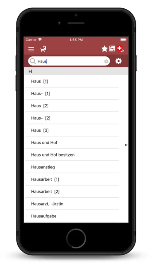 • Sämtliche Wörter können zu FAVORITEN hinzugefügt und dort verwaltet werden, um diese zu jedem Zeitpunkt wieder schnell aufzurufen.