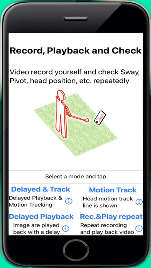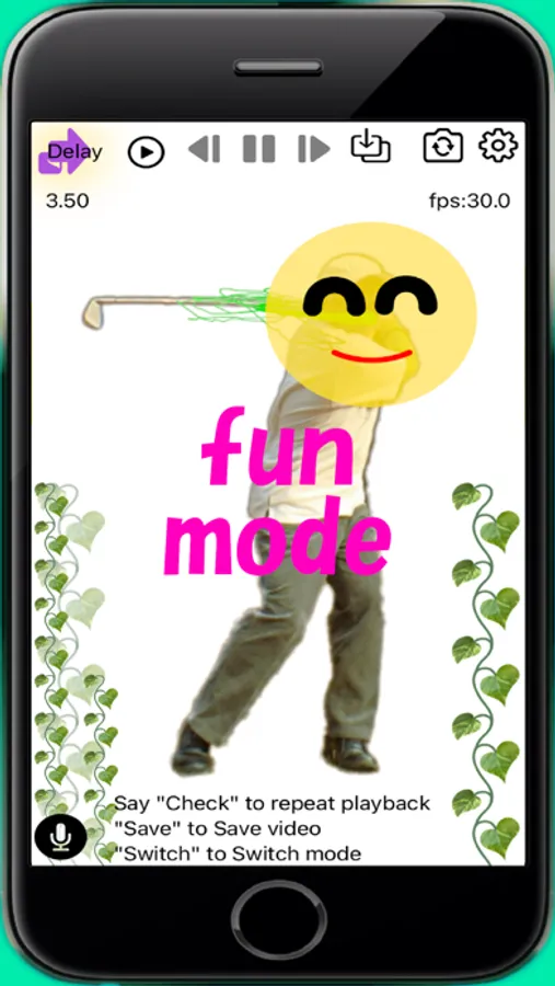 In the "Record and Playback mode" repeats video recording and playback. You can check your form with your own eyes. Delayed playback, slow playback, and loop playback are possible. Since you can remotely control it by voice (voice command), you can start recording and practice at your own rhythm. You can clearly see the movement by motion tracing. You can play back specific parts in slow motion, so you can check important parts in detail. You can also pause playback and advance frame by frame. You can use it for various sports such as golf, tennis, and baseball. You can use it as a training support tool. Fun illustrations make training fun (fun mode).