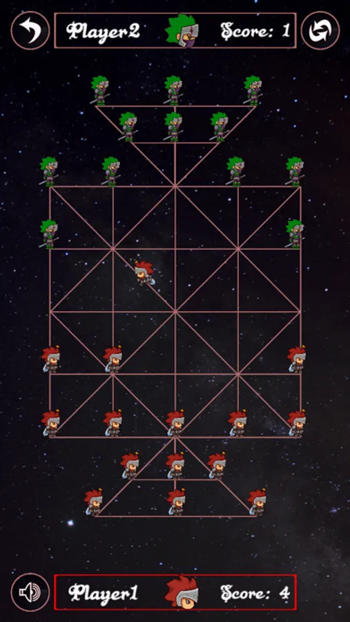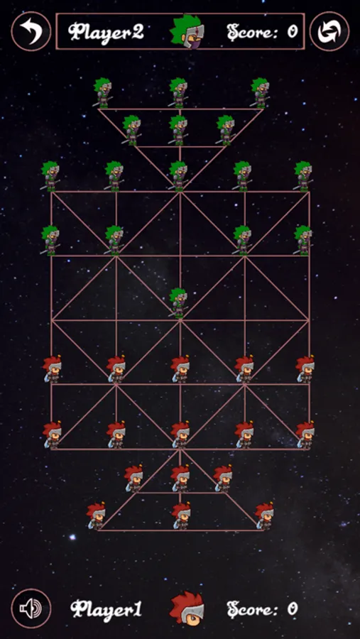 The game play between two players, each player have 16 warriors and total 32 warriors on the board. Players can move their warriors left, right, forward, backward and diagonally in the empty edge of the board. If a player wants to kill the opponent’s warrior, then user can do it if there is a vacant edge just beyond the opponent’s warrior in the board. For this purpose, the player’s warrior must be adjacent to the opponent’s warrior.