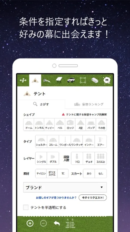 キャンプサイトのレイアウトをシミュレーションすることができるアプリです。