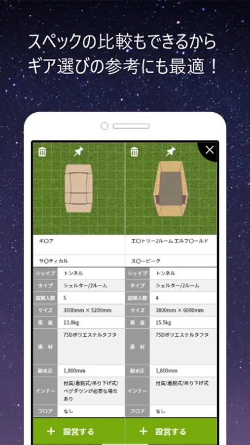 実際の設営時はもちろん、キャンプギア選びの参考などにもご活用ください!
