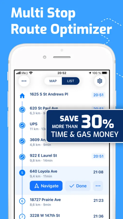 MyWay Route Planner is an app that builds the most efficient routes. MyWay app helps you save up to 30% of your time and money on fuel by providing an optimized stop sequence.