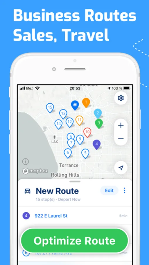 MyWay Free Route Planner allows you to optimize an unlimited number of routes, up to 20 stops per route, with all features available.