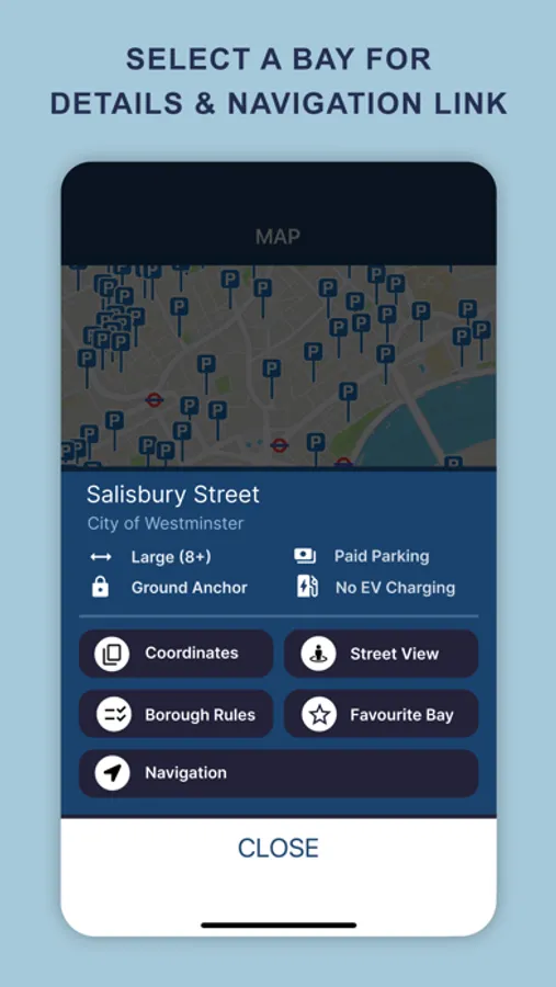 Upgrade to our premium app to unlock advanced data on every bay, as well as Google Streetview so you can view the location before getting there. Advanced data includes cost, size, security and EV charging features.