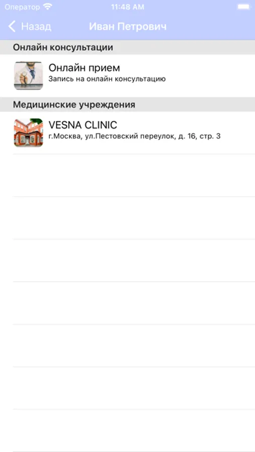 Личный кабинет пациента многопрофильной клиники доказательной медицины VESNA Clinic. В приложении вам будут доступны следующие функции:
