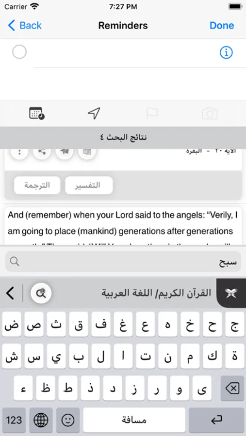 3- إمكانية إدراج ترجمة الآية أو تفسيرها.