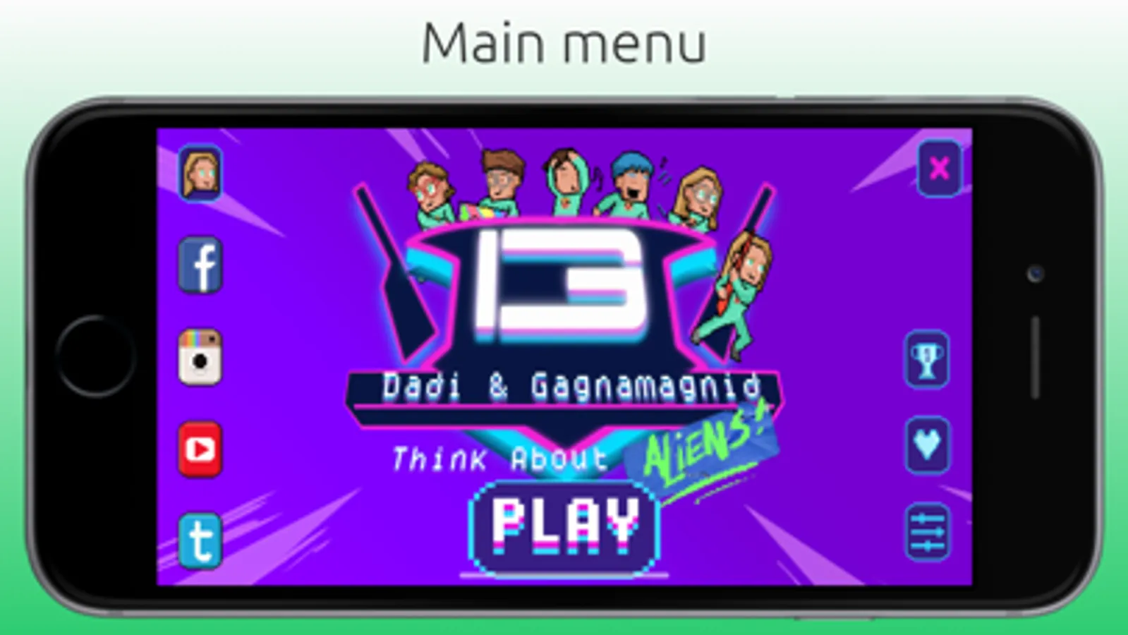 Help Daði rescue Gagnamagnið and defeat the music hating aliens in this platformer/rhythm game. This game tells an exclusive story that takes place in between the "Think About Things" and "10 Years" music videos with original music from Daði Freyr, hidden characters and all original artwork.