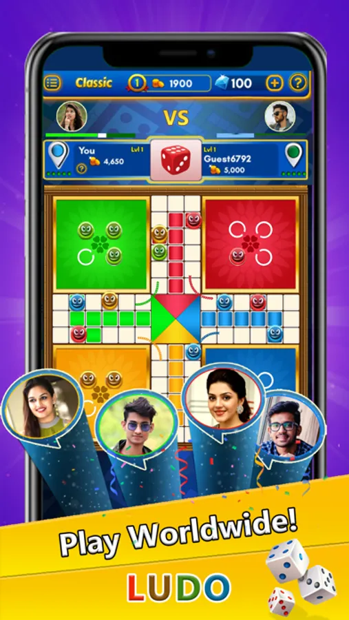 Play with beautiful players and make them your buddies in this Ludo Online Multiplayer. Invite and challenge your Facebook Friends in a private game room and beat them to become mega ludo classic King. Play with your family through Local and Online Multiplayer. Play 2 to 4 Player Local Multiplayer Mode in ludo classic. Graphics with a modern look and the feel of a dice ludo game.