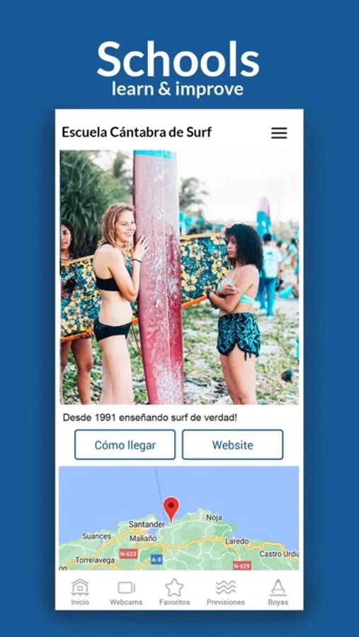 Acceso a la principales estaciones meteorológicos y oceanográficas para cada spot.