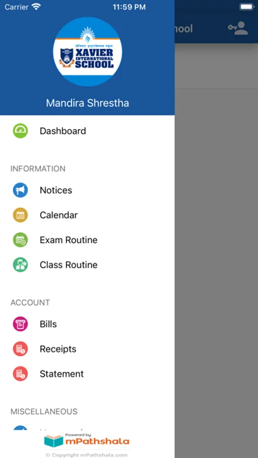 Parents can now view information maintained by the school about their children through the app. This information includes: class/exam routines, school calendar, homework, attendance records, progress reports, bills, receipts, etc. They can also send message to the school as well as receive regular communication from the school.