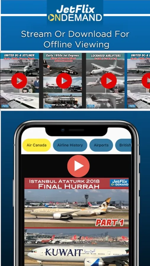 JetFlix TV features aviation videos for your favourite Airport Runway & Landing Actions with Aviation Tours. Airliner Videos & Flight Reviews with Fans in the Classic Jets. Aviation Stream Service App is designed for the Super Fans. Henry Tenby the JetFlix Creator is providing you the Airplane flying Streaming with some runway actions and airshows. Historical Aviation videos from Canadian 1960s flight reviews and DC-8 Farewell with Jets mini series. Watch Flight Actions from the Video Categories with this Streaming App.
