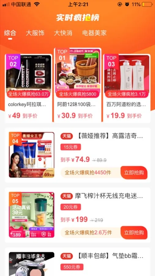 一款基于分享经济的移动导购平台APP。精选特价优惠券商品,确保以低价买到,确保正品,限量抢购。