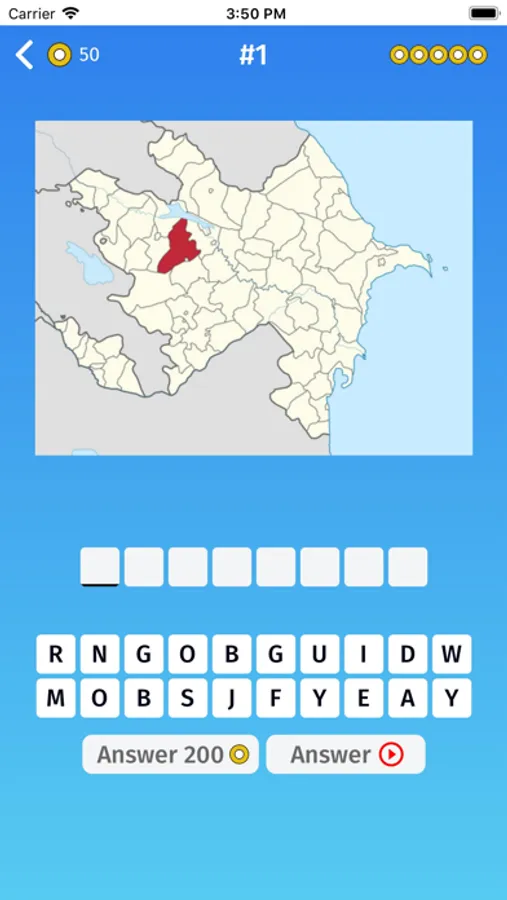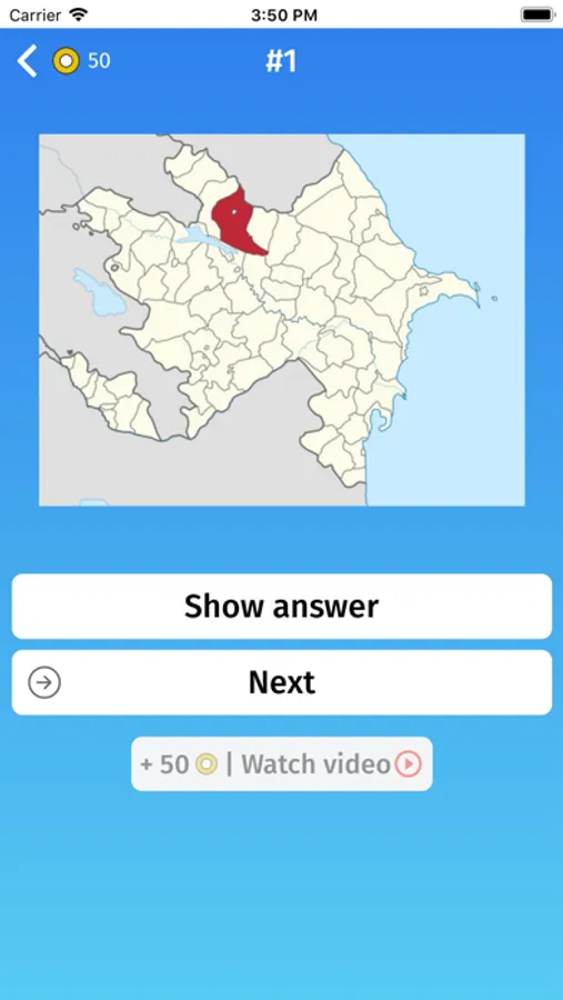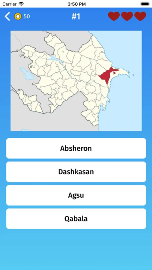 - Multiple choice: guess the provinces of Azerbaijan, by selecting one of the variants.