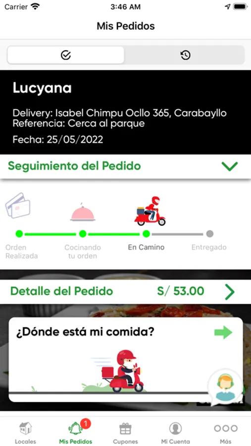 - Conocer cómo va avanzando tu orden (desde que se empieza a cocinar hasta que está en tus manos).