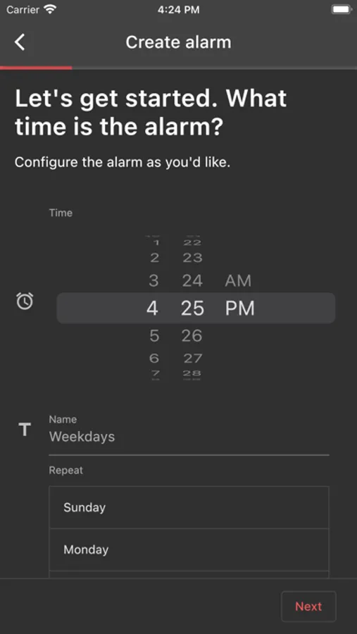 1. Set an alarm for 7:00am with a get up time of 7:05am