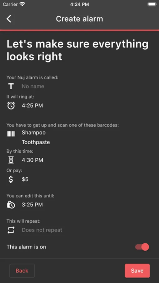 4. If you don't scan one of the barcodes by the get up time, you get charged the penalty
