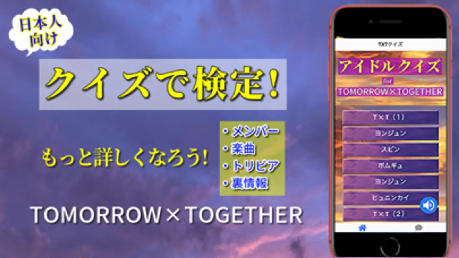 TOMORROW x TOGETHER のクイズアプリが出たよ。(非公式Ver.)
