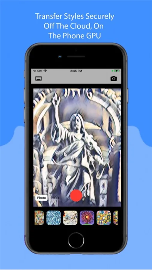 Styles can be applied on the photos taken from the phone front and back cameras or loaded from the photo library. The main advantage of Ai Styles app is stylizing and saving the videos from the phone camera in the real time.