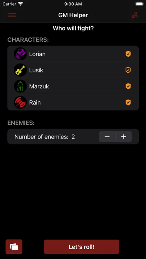 - The fastest start of the battle. You only need to select the PC previously created in a couple of taps and indicate the number of enemies.