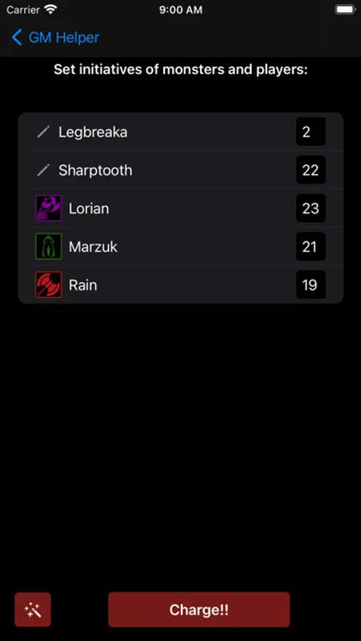 - Initiatives and names of enemies are set both manually and in the "random" mode, if you need to quickly rush into the battle, and the turn order is not too important (lazy GMs love it!).
