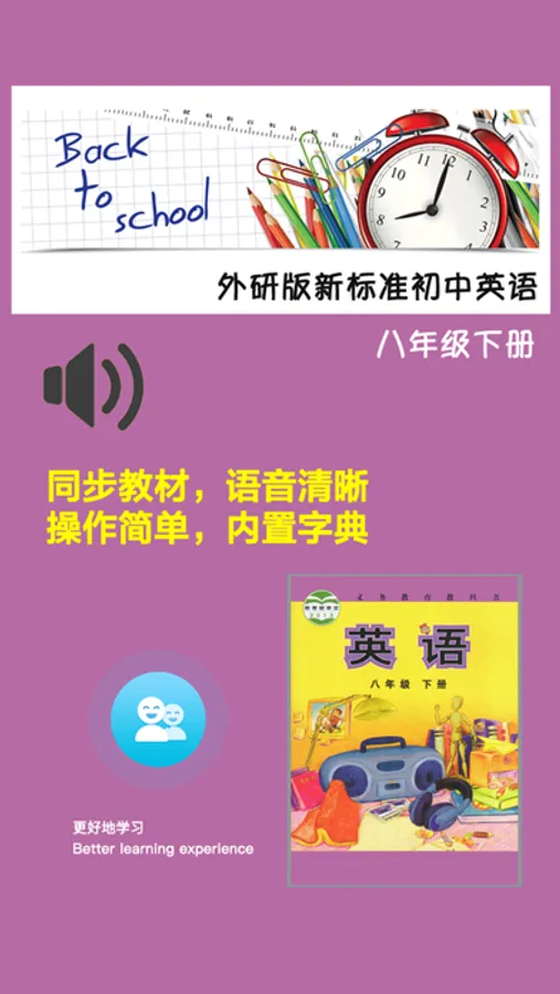此App包括外研版《新标准初中英语八年级下册》全部课程内容。