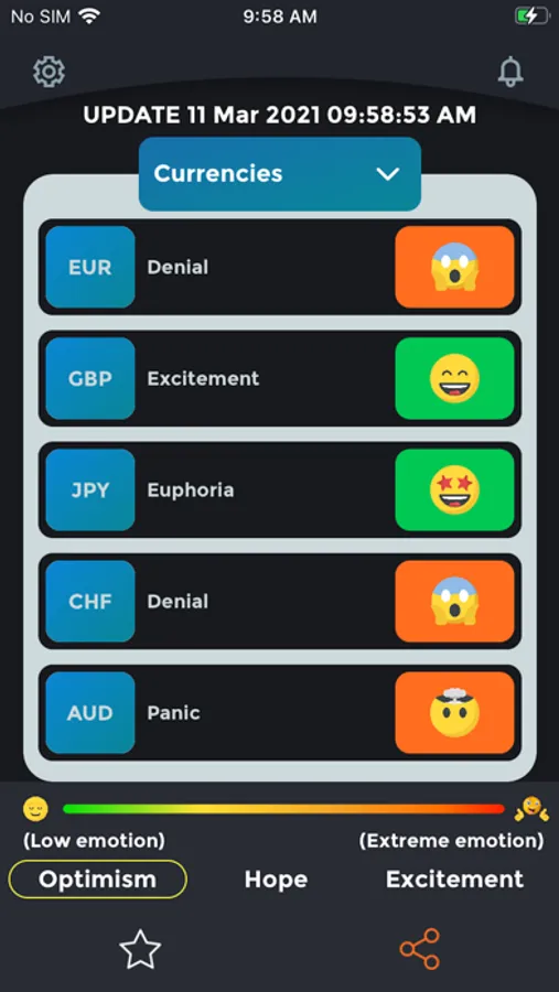 Now view market emotions for each asset in real time. An investor/Trader goes through various emotions when the price oscillates between uptrend and downtrend.