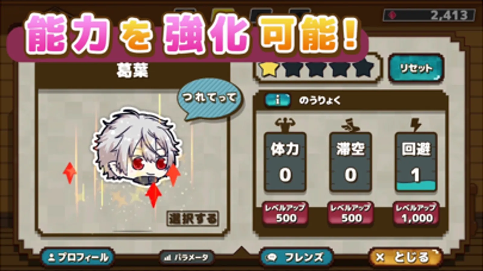 冒険で獲得したポイントでライバーを召喚したり、能力を強化可能!
