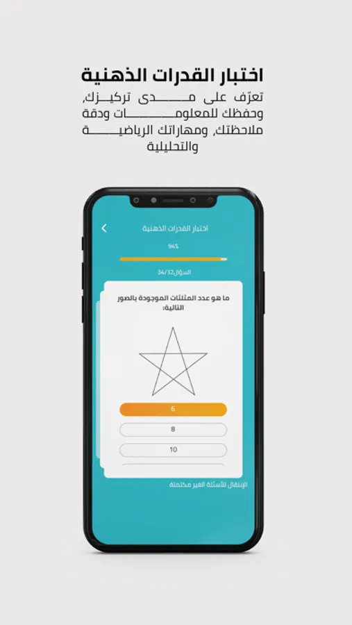 اختبار القدرات العقلية والذكاء IQ: الذي يقيس القدرات الذهنية من خلال عدد من أسئلة الذكاء المدروسة.