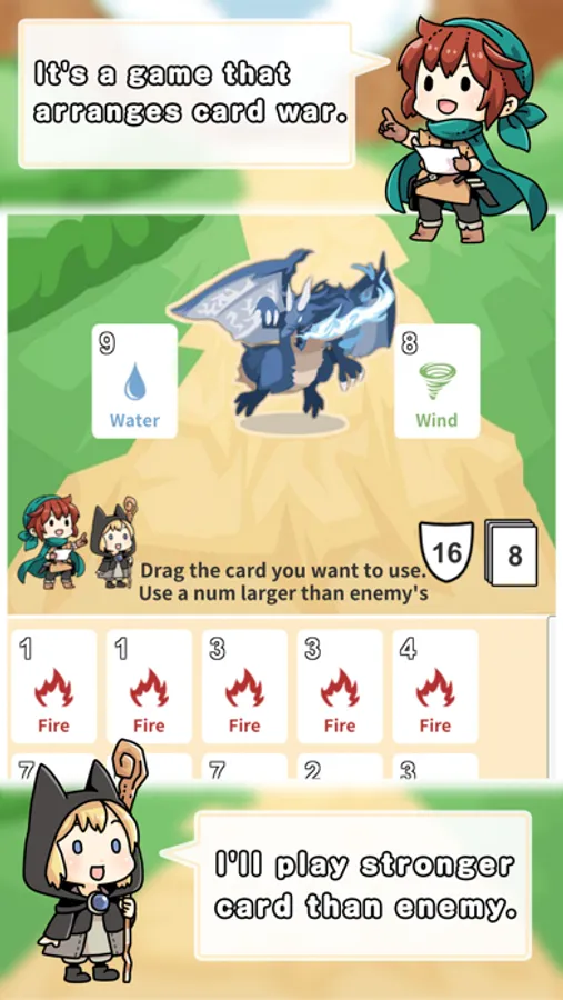If you play a card with an advantageous element, you become invincible and take no damage.