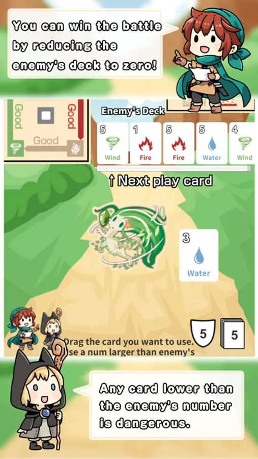 If the card you play is larger than your enemy's, you can destroy his deck; if it is lower, you lose your deck.