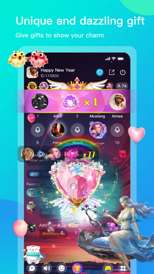 Choose a group voice room from thousands of live broadcast rooms every day, filter the rooms by country/region or theme, you can chat with them, sing songs, play interesting games with them, and make new friends from all directions