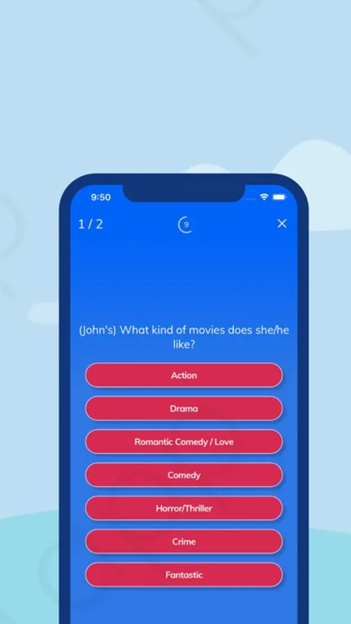 Each test is asked 15 different questions, and the result of the test is a graph showing how well you know each other.