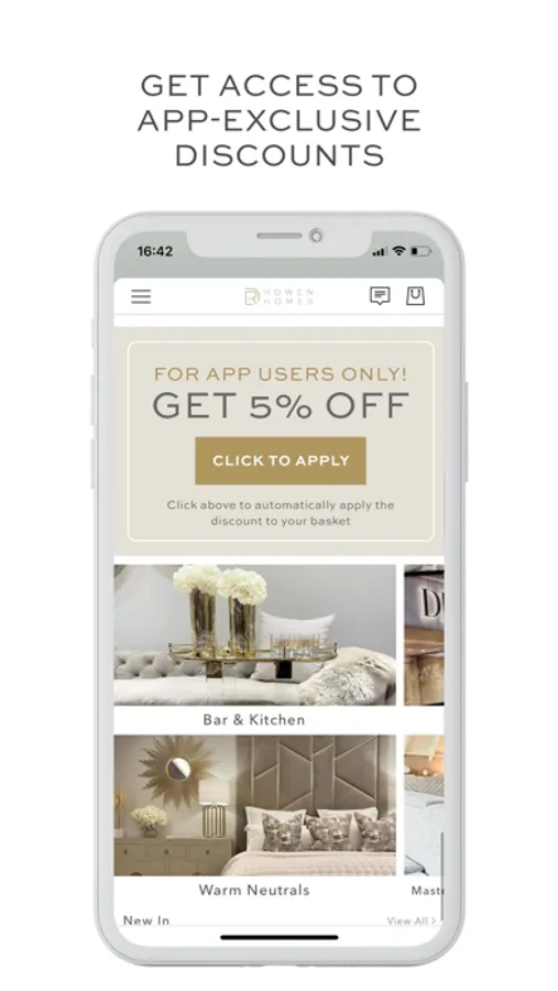 Our homeware collections cover everything from furniture to accessories, with new products launching every week. With the Rowen Homes app you’ll have exclusive access to amazing offers, early launches and the latest homeware drops in your pocket!
