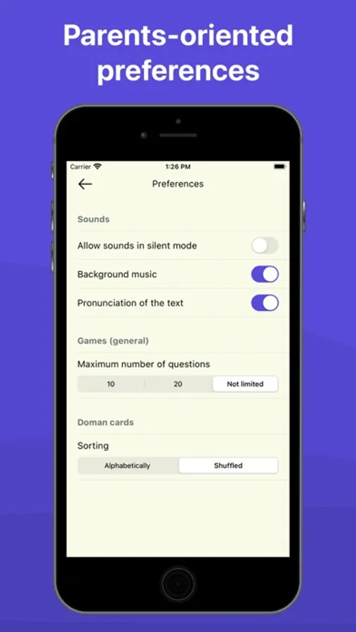 With our app, children can have fun while expanding their vocabulary. Join them in this playful adventure, where learning becomes a joyful experience for both parent and child. Customize your experience using the parents-only preferences feature.