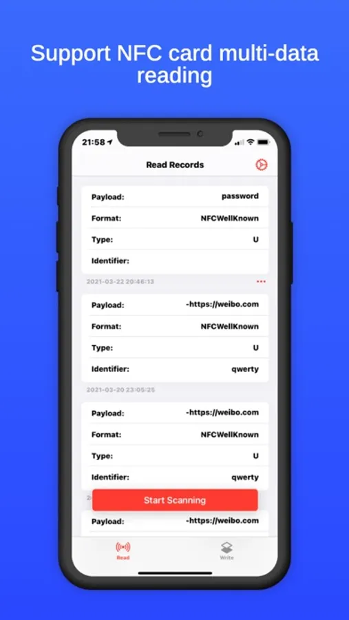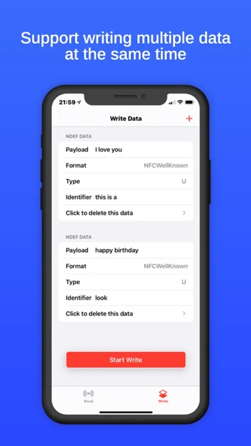 * Write data to NFC cards, also supports writing multiple data at the same time, supports multiple data types.