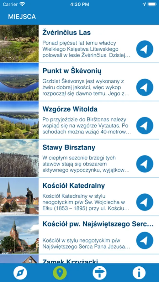 Aplikacja to przewodnik turystyczny to atrakcjach i szlakach w Ełku i Birstonas