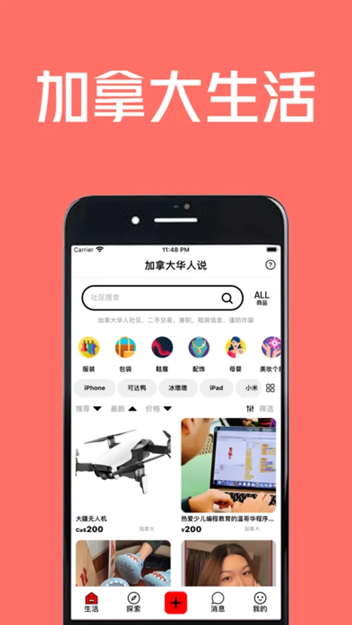 加拿大华人的生活社区,用户发布二手商品,生活服务,家政保姆,上门维修,民宿租房,兼职招聘等生活信息。