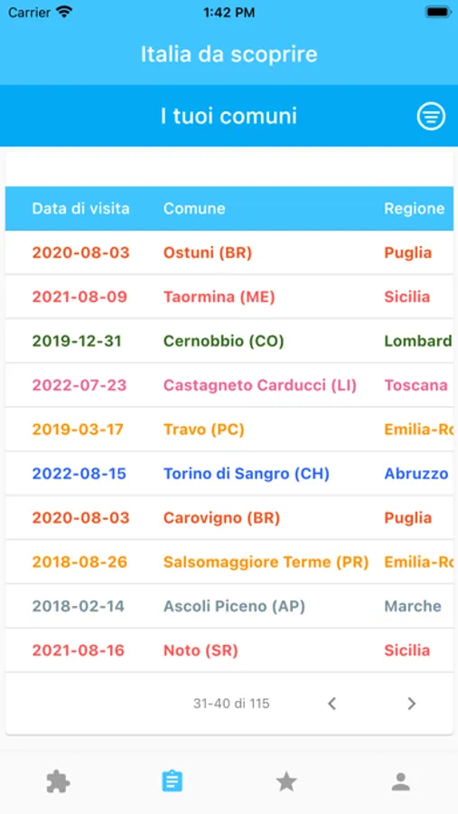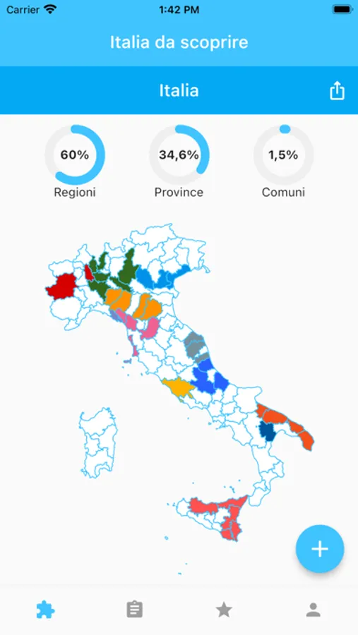 Tieni il conto dei comuni, delle province e delle regioni che hai visitato in Italia e verifica quanti te ne restano da visitare.