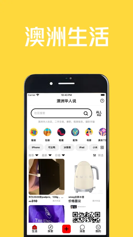 澳大利亚华人的生活社区,用户发布二手商品,生活服务,家政保姆,上门维修,民宿租房,兼职招聘等生活信息。