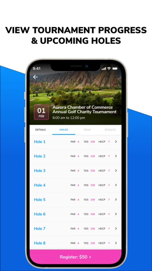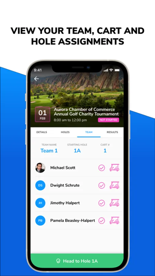 As a player you can register for your tournament, pay your greens fees, check-in to the tournament, and get ready to golf. After a smooth and seamless registration and check-in you can use the Clava Golf app to view your team, see which cart you're on, and check out the details of the course you're about to play.