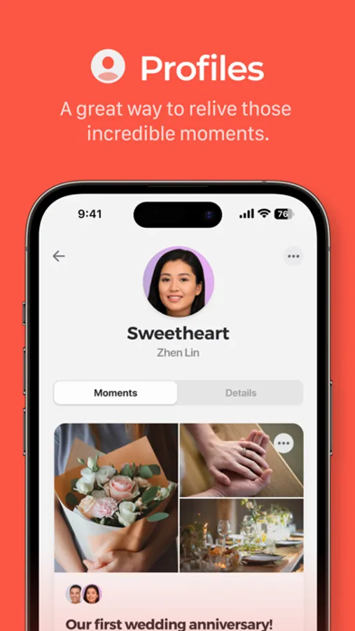 When creating moments you can add people to each of those memories. You can view each person's profile and relive all those incredible moments you have shared.
