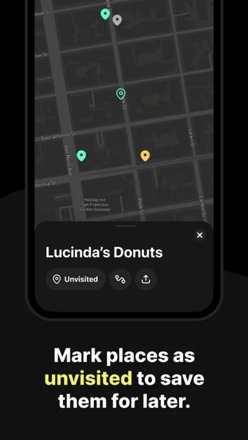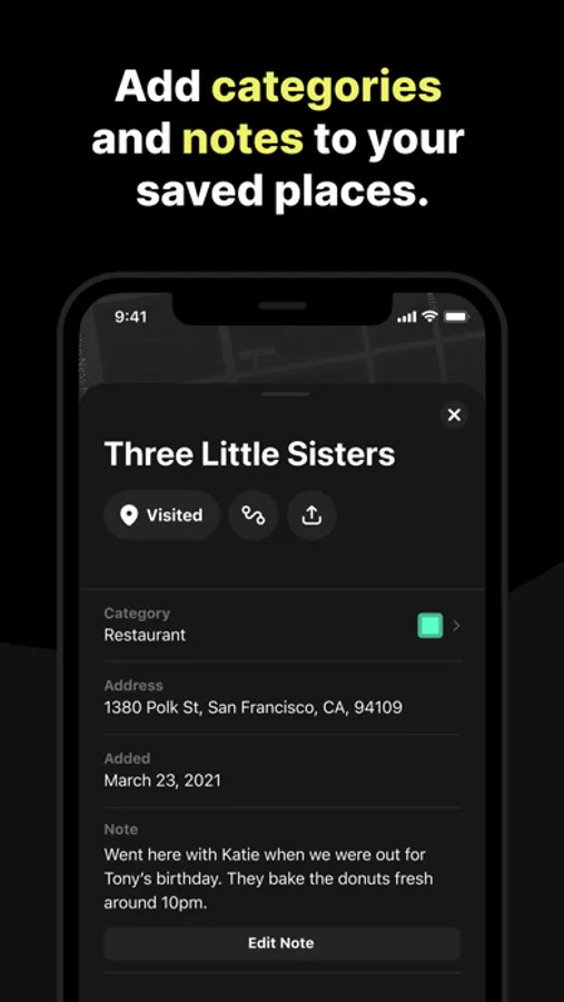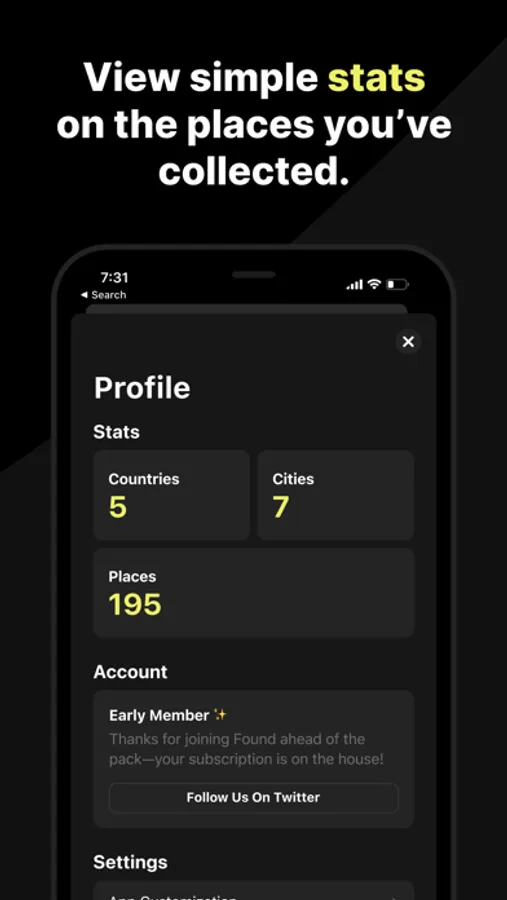 With Found, you can add places to your collection and see them visualized on a beautiful, minimal map. You can categorize and add notes to the places you’ve saved, or mark them as unvisited to keep track of where you’d like to go next.